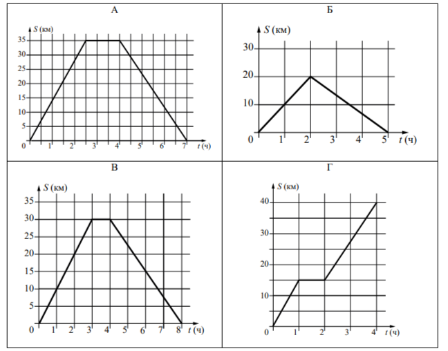 Задание 2. Четыре группы туристов отправились в поход до озера из своих баз отдыха. После прибытия на озеро, они продолжили свой маршрут. Ниже изображены графики зависимостей расстояния туристов от времени в пути