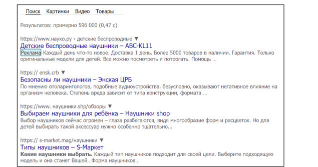 На что указывает пометка Реклама, размещённая для сайта https://www.наухо.ру?