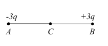 Задание 2. Две маленькие закреплённые бусинки, расположенные в точках А и В, несут на себе заряды –3q < 0 и +3q > 0 соответственно. Расстояния одинаковые: АС = СВ.