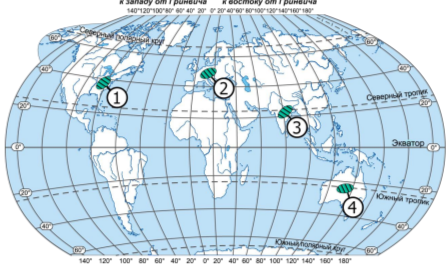 Задание 10. На карте цифрами обозначены ареалы с различными показателями средней плотности населения. Какой цифрой обозначен ареал с плотностью населения ниже 50 человек на км²?