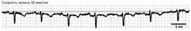 Задание 27. На картинке представлена запись ЭКГ Ольги в III стандартном отведении. Рассчитайте приблизительную ЧСС.