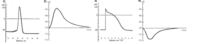 Задание 21. Потенциал действия аксона, полученный при внутриклеточной регистрации, приведен на рисунке: