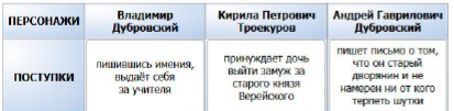 Задание 9. Установите соответствие между персонажами романа А.С. Пушкина «Дубровский» и их поступками.