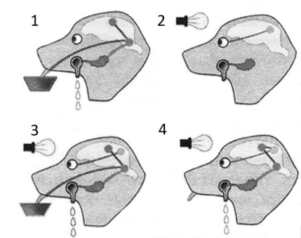 12. На рисунках под цифрами 1–4 изображены стадии образования условного рефлекса у собаки. На каком из рисунков лампочка действует как условный раздражитель?