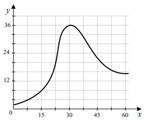 Какие два из приведённых ниже описаний наиболее точно характеризуют данную зависимость в указанном интервале времени?