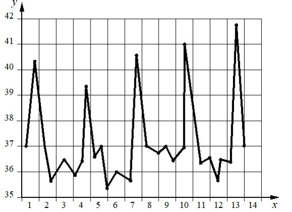 18. Изучите график зависимости температуры тела больного малярией от продолжительности болезни (по оси х отложена продолжительность болезни (сутки), а по оси у – температура тела больного (°С)).