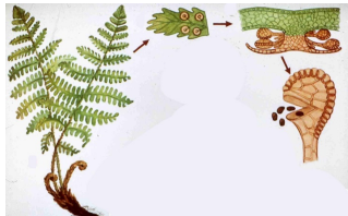 1. Рассмотрите рисунок, на котором изображён фрагмент жизненного цикла папоротника.