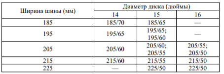 Задание 1. Завод допускает установку шин с другими маркировками. В таблице показаны разрешённые размеры шин.