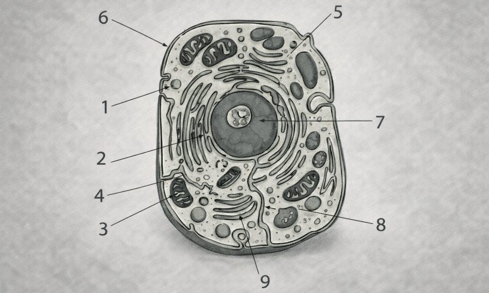 Задание 5. Какой цифрой на рисунке обозначена структура, отвечающая за образование лизосом?