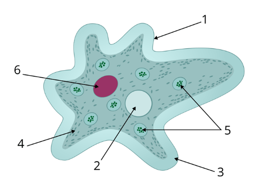 Задание 4. Рассмотрите рисунок клетки амёбы обыкновенной.