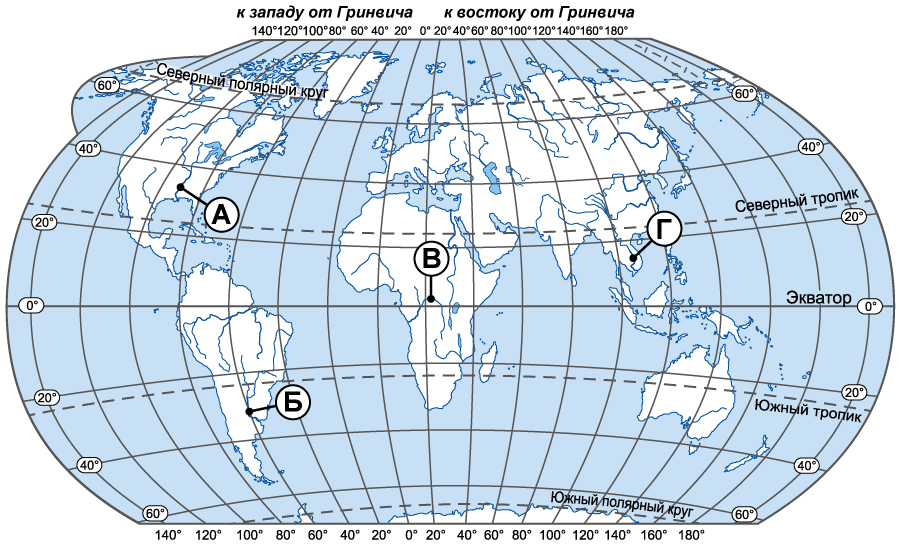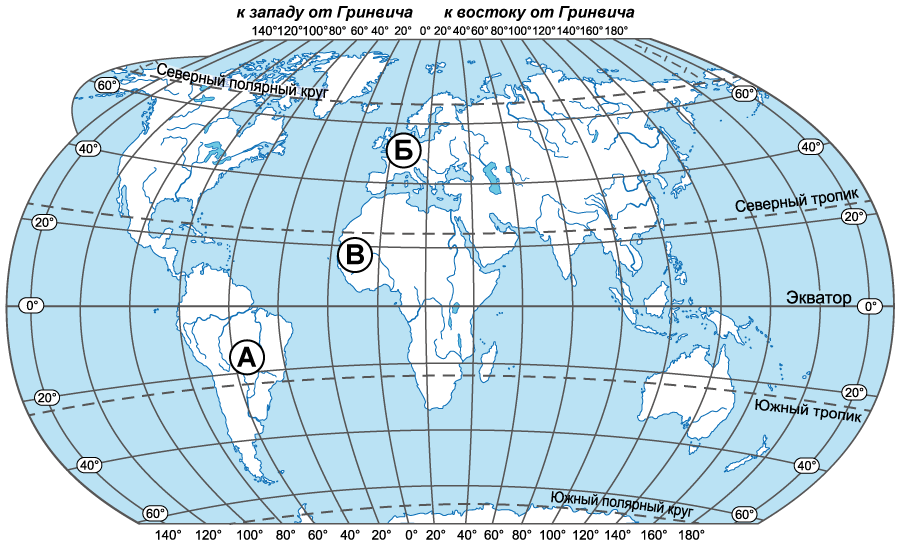 На карте мира пункты, для которых построены изображённые на рисунках климатограммы, обозначены буквами, соответствующими буквам климатограмм.