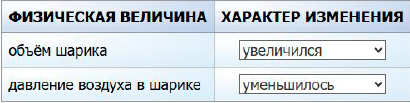 | давление воздуха в шарике | увеличился уменьшился не изменился |