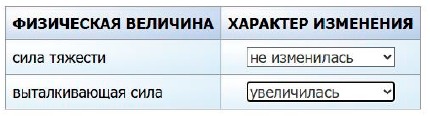 | выталкивающая сила | увеличился уменьшился не изменился |
