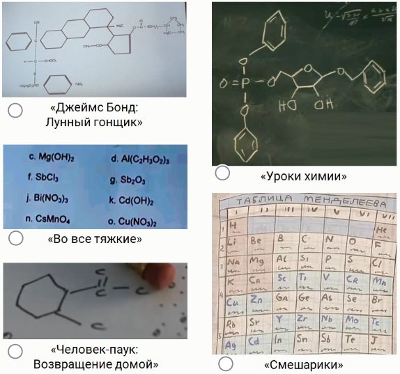 Задание 1. Даны вырезки фильмов, сериалов и мультфильмов с «химическими записями». В каких из них НЕТ ошибок?