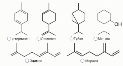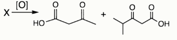 В ходе реакции было выделено два основных продукта: ацетоуксусная кислота и кетоизокапроновая кислота в мольном соотношении 1:1 соответственно. Выберите структуру терпена X: