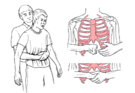 Задание 15. В каком случае в качестве первой помощи используется приём Геймлиха, изображённый на рисунке?