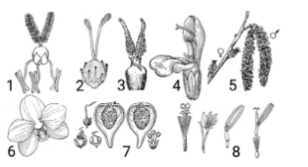 Задание 22. Установите соответствие между изображениями цветков или соцветий и агентами опыления.