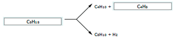 Ниже приведена схема (без коэффициентов) двух процессов, протекающих при химической переработке нефти, в которых участвует одно и то же исходное вещество