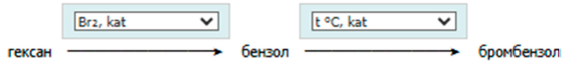 Используя выпадающие списки выберите реагенты и условия, с помощью которых можно осуществить эти превращения.