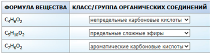Задание 1. Установите соответствие между формулой органического вещества и классом (группой) органических соединений, к которому(-ой) оно принадлежит: к каждой позиции из первого столбца подберите соответствующую позицию из выпадающего списка.