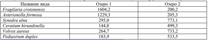 Таблица 1 – Количественные показатели фитопланктонных сообществ озер (тыс. клеток/л)