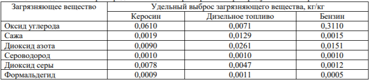 Таблица 2 – Удельный выброс вредного вещества при горении нефтепродуктов на поверхности