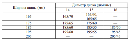Задание 1. Завод допускает установку шин с другими маркировками. В таблице показаны разрешённые размеры шин.