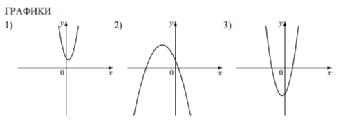 Задание 11. На рисунках изображены графики функций вида y = ax^2+ bx + c . Установите соответствие между знаками коэффициентов a и c и графиками функций.