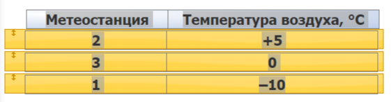 Задание 6. На метеостанциях 1, 2 и 3, расположенных на склоне горы на разных высотах, были одновременно проведены измерения температуры воздуха. Полученные значения указаны в таблице.