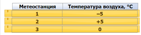 Задание 6. На метеостанциях 1, 2 и 3, расположенных на склоне горы на разных высотах, были одновременно проведены измерения температуры воздуха. Полученные значения указаны в таблице.
