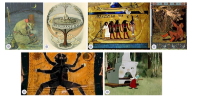 Задание 4.  Распределите представленные ниже изображения по группам: сказки и мифы.