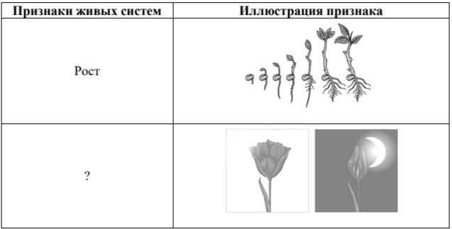 Задание 1. Рассмотрите таблицу «Признаки живых систем». Запишите в ответе пропущенный термин, обозначенный в таблице вопросительным знаком.