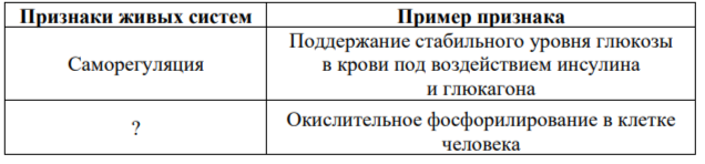 Задание 1. Рассмотрите таблицу «Признаки живых систем». Запишите в ответе пропущенный термин, обозначенный в таблице вопросительным знаком.