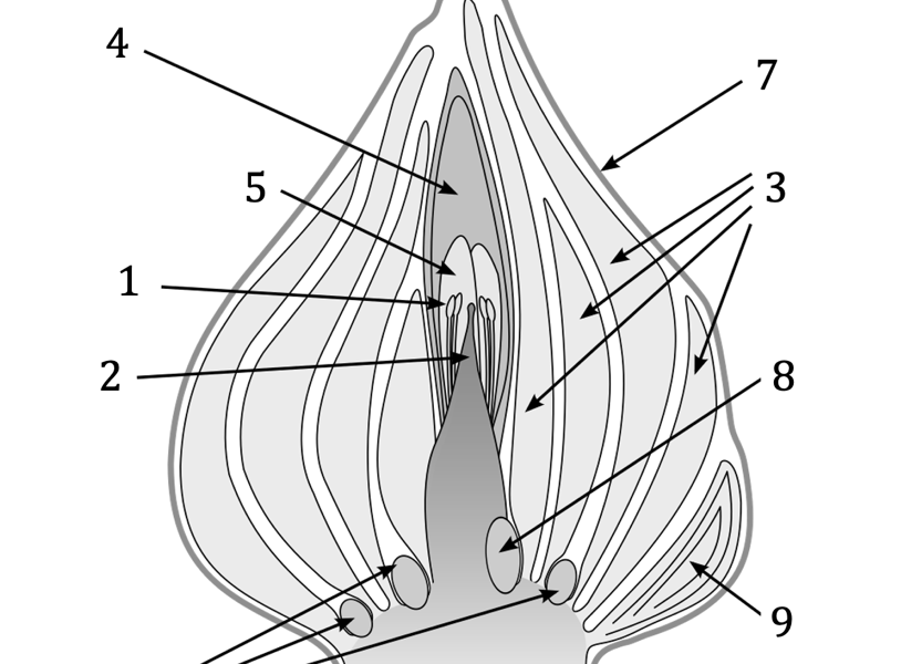 Задание 9. Какой цифрой на рисунке луковицы тюльпана обозначена кроющая чешуя?