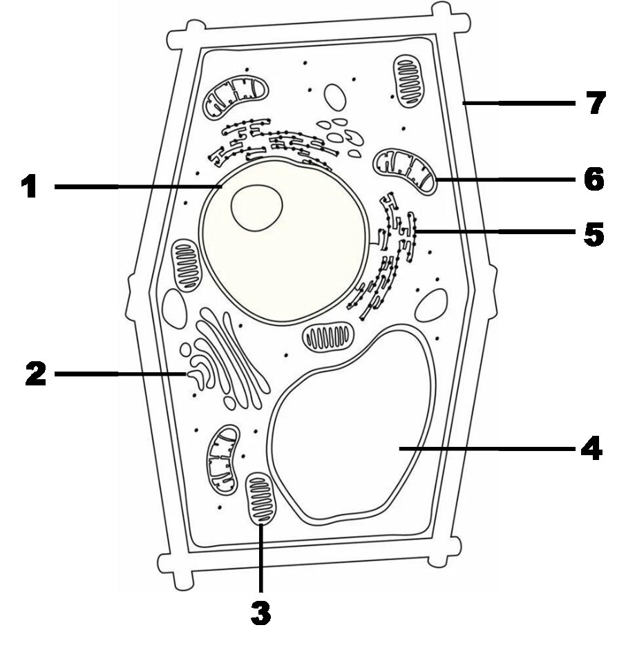 Задание 3. Какой цифрой на рисунке обозначена структура клетки, состоящая из полисахарида целлюлозы?