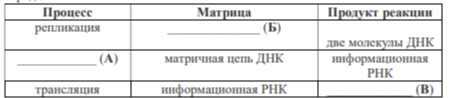 Задание 5. Проанализируйте таблицу «Реакции матричного синтеза». Заполните ячейки таблицы, используя элементы, приведённые в списке. Для каждой ячейки, обозначенной буквой, выберите соответствующий элемент из предложенного списка.