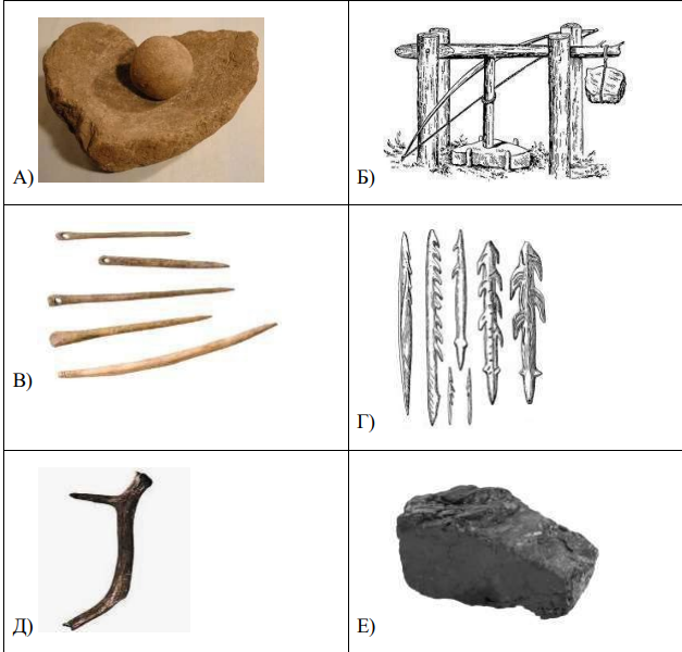 1. Рассмотрите изображения, имеющие отношение к разным видам деятельности первобытного человека. Соотнесите изображения с функцией, которую они выполняли.