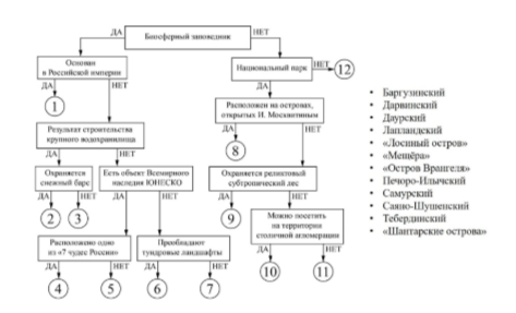 Задание 1. Следуя алгоритму, распределите ООПТ РФ в соответствующие позиции.