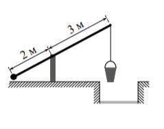 Задание 10. На рисунке изображён колодец с «журавлём». Короткое плечо имеет длину 2 м, а длинное плечо — 3 м. На сколько метров опустится конец длинного плеча, когда конец короткого поднимется на 1 м?