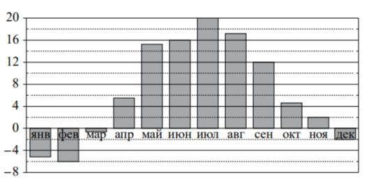 Задание 3. На диаграмме показана среднемесячная температура воздуха в Минске за каждый месяц 2003 года. По горизонтали указываются месяцы, по вертикали — температура в градусах Цельсия.