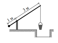 Задание 10. На рисунке изображён колодец с «журавлём». Короткое плечо имеет длину 1 м, а длинное плечо — 3 м. На сколько метров опустится конец длинного плеча, когда конец короткого поднимется на 0,5 м?