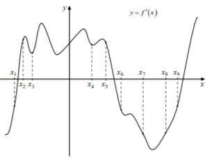 Задание 8. На рисунке изображён график функции y = f ‘( x) — производной функции f ( x). На оси абсцисс отмечено шесть точек: x1, x2, x3, x4, x5, x6. Сколько из этих точек принадлежит промежуткам возрастания функции f (x)?