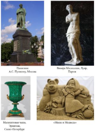 Задание 3. Для создания произведений искусства используют различные химические вещества. Из чего сделаны изображенные ниже скульптуры? Установите правильное соответствие.