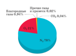 Основной компонент воздуха по объёму – азот.