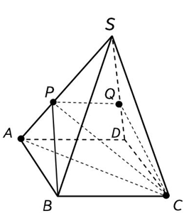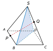 3. В пирамиде SABCD постройте точку пересечения прямой PQ с плоско стью (BSD). Опишите алгоритм соответствующего построения.
