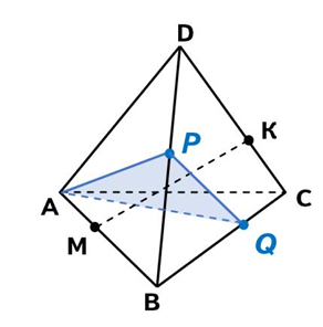 3. В тетраэдре ABCD построить точку пересечения прямой MK с плоско стью (APQ). Опишите алгоритм соответствующего построения.