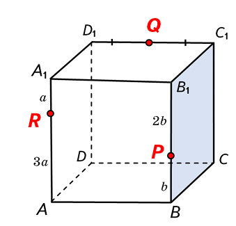 Дано: Куб ABCDA1B1C1D1, точка Q – середина С1D1, точка P∈ BB1, точка R ∈ AA1, причем BP : B1P = 1 : 2, AR : A1R = 3 : 1. Построить: сечение куба плоскостью (PQR). Найти отношение, в котором оно делит A1D1.