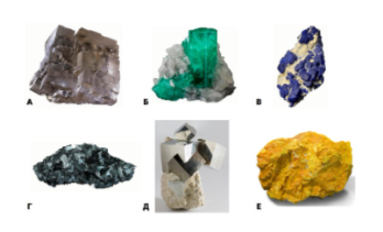Задание 11. Установите соответствие между изображениями и описаниями минералов.