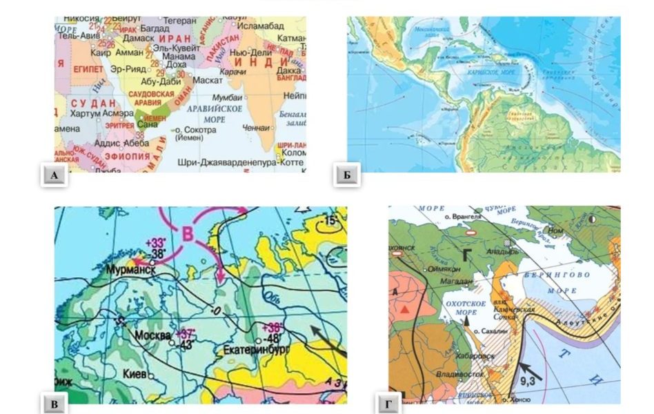 Задание 3. Установите соответствия между названиями карт и их фрагментами на иллюстрациях.