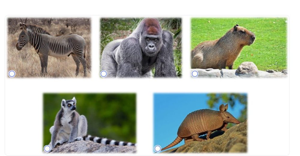 Задание 7. Выберите изображения двух животных, чей естественный ареал обитания расположен не на том же материке, что ареалы трёх других животных.